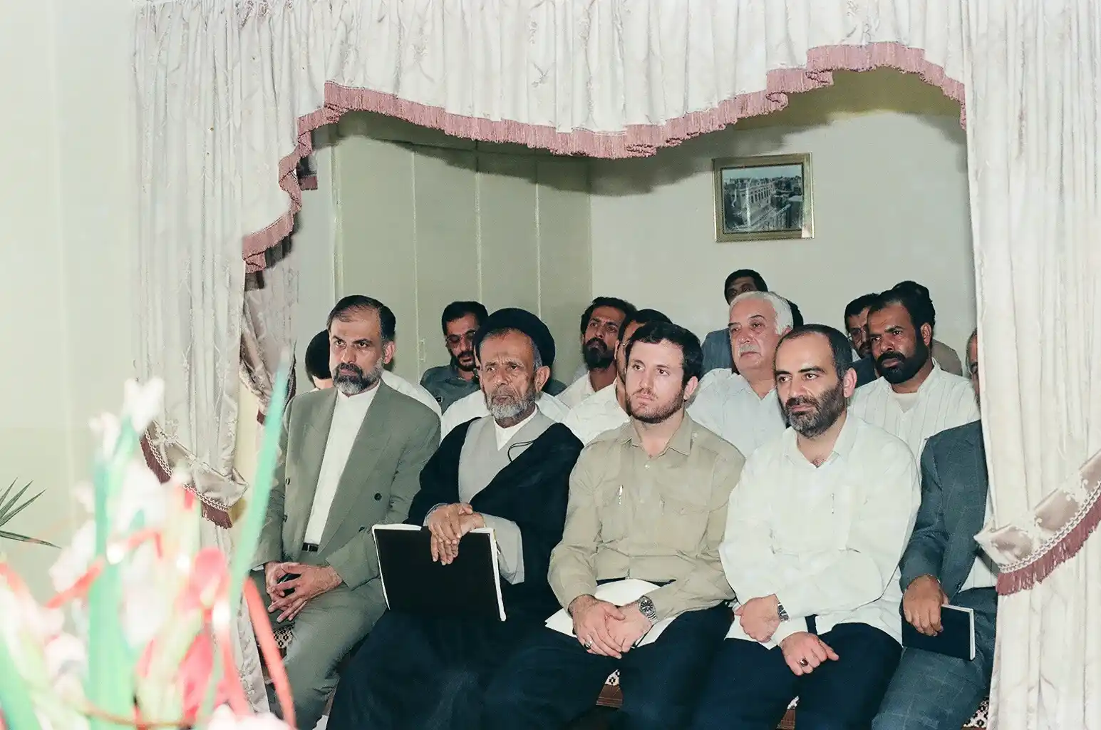 ردیف اول از سمت راست: دکتر سید جعفر حمیدی، عبدالرحمن ندیمی بوشهری(استاندار) حجت الاسلام سید محمد حسن نبوی(رییس وقت بنیاد) ردیف دوم دکتر احمد جولایی، گنجور، دکترعبدالکریم مشایخی(رییس کنونی بنیاد ایران شناسی شعبه بوشهر) - سال 1373