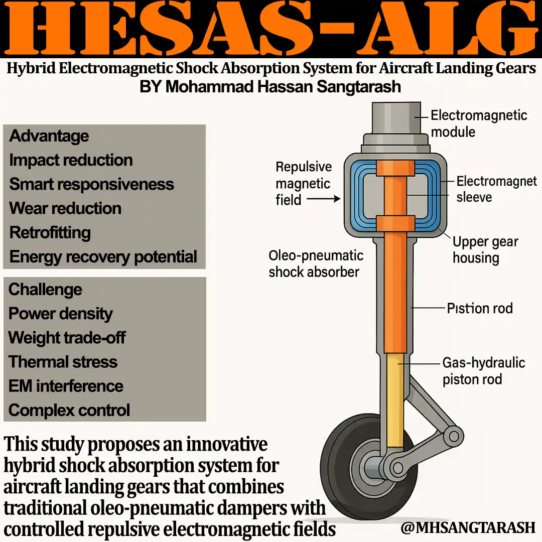 The incorporation of electromagnetic repulsion systems into aircraft landing gear represents a promising frontier in adaptive aeronautical engineering. By supplementing conventional oleo systems, a hybrid configuration can provide better impact mitigation, adjust dynamically to landing scenarios, and extend gear life. Though currently at conceptual or research stage, this technology aligns with the aerospace industry's trajectory toward smart, energy-efficient, and responsive systems. With advancing materials and compact energy storage technologies, its realization—particularly in drones, fighter jets, and VTOL systems—is both feasible and strategically valuable.