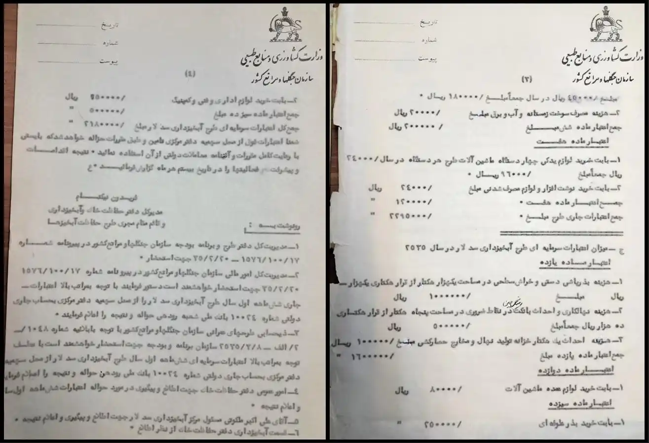 نامه مدیرکل دفتر حفاظت خاک و آبخیزداری سازمان جنگلها و مراتع کشور به مرکز آبخیزداری سد لار. سال 1355